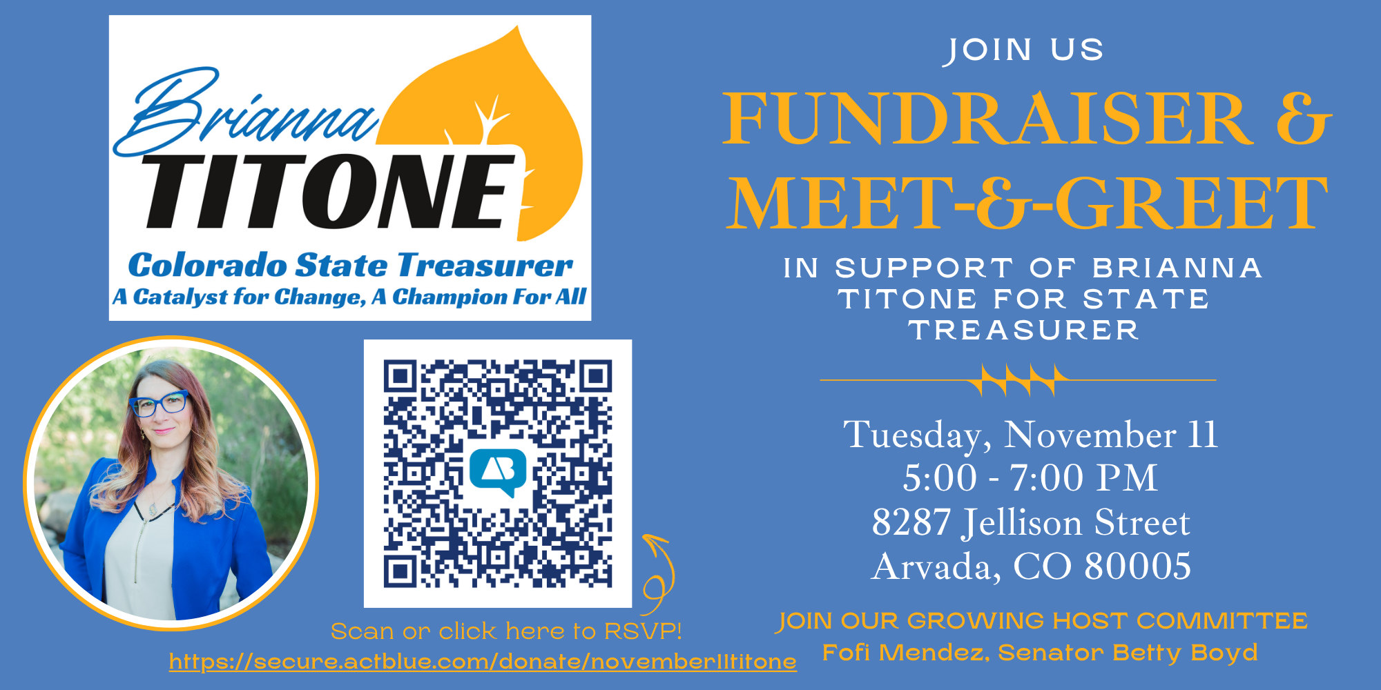 Tuesday, November 11: Arvada Fundraiser hosted by Fofi Mendez & Senator Betty Boyd