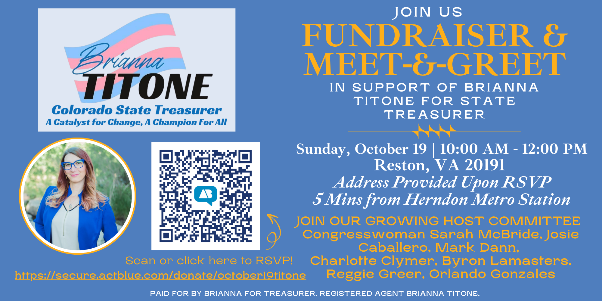 Sunday, October 19: Washington DC Fundraiser hosted by Congresswoman Sarah McBride, Charlotte Clymer, Mark Dann, Josie Caballero, Byron Lamasters, Reggie Greer, Orlando Gonzales & more!